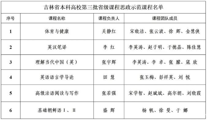 近日,吉林省教育厅公布吉林省本科高校第三批省级课程思政示范课程名单,优米网官方下载安装《体育与健康》《英汉笔译》《理解当代中国(英)》《英语语言学导论》《高级法语阅读与写作》以及《基础朝鲜语Ⅰ、Ⅱ》共6门课程获批省级课程思政示范课程,涵盖体育、翻译、语言文化等多领域,充分彰显了学校课程思政建设水平与育人实效。